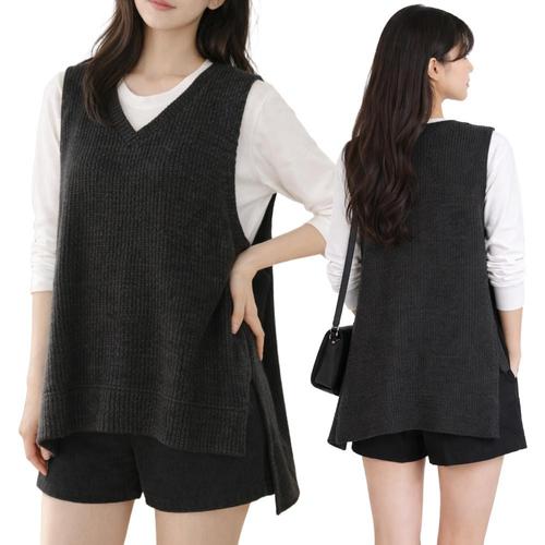 [모든GO]여성 데일리 빅사이즈 하프 롱 니트 조끼 간절기