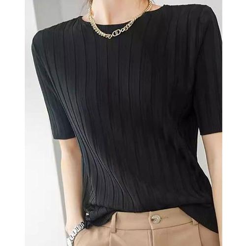 [에이치플러스몰]여성 가벼운 골지 반팔 니트 1P 얇은 간절기 티셔츠