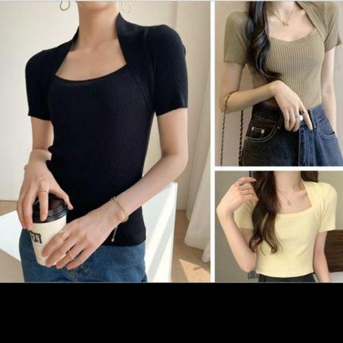 [셀러허브_여성트랜드패션]여성 반팔 얇은 골지 이너 크롭니트 꼬임 티셔츠