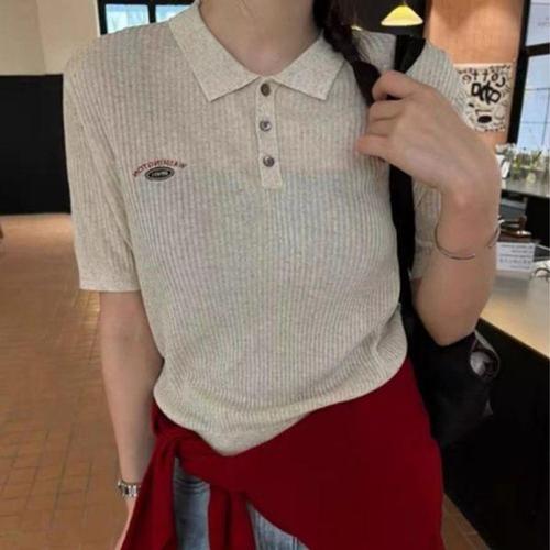 [셀러허브_여성트랜드패션]여성 반팔카라니트티 봄 골지반팔 시스루 여름 니트