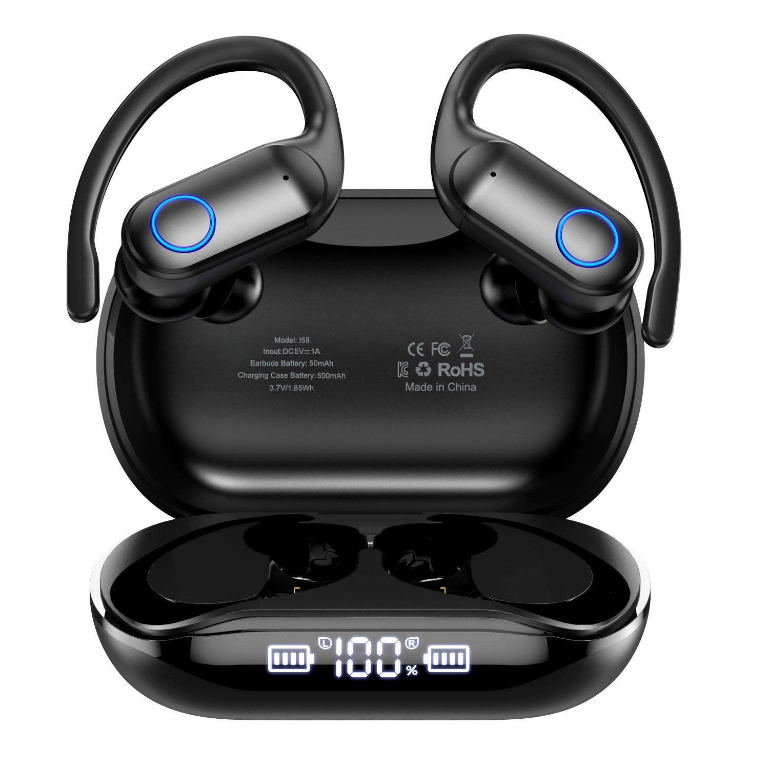 TEMU 귀걸이형 무선 최신 블루투스 5.4 오픈형 버턴식 이어폰,듀얼 LED 디스플레이가 있는 오버이어 헤드폰,500mAh 충전식 배터리,이어후크가 있는 무선 이어폰,남녀 공용 무선 이어버드