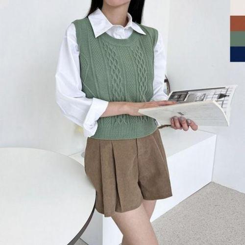 [에이치플러스몰]1052 여자베이직 케이블 니트조끼심플