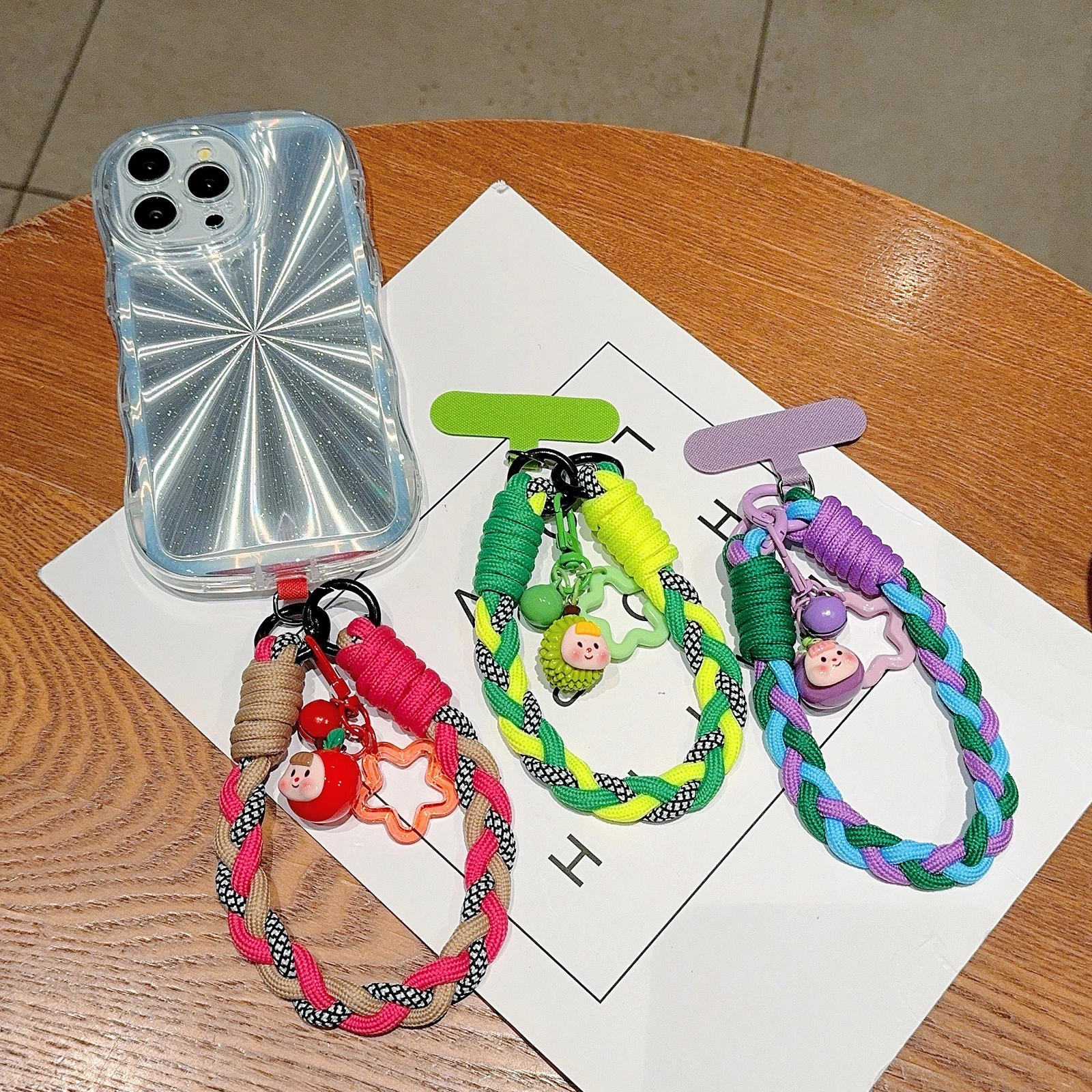 1개 창의적인 만화 휴대폰 스트랩 삼색 손목 스트랩 수제 핸드 로프 휴대폰 액세서리