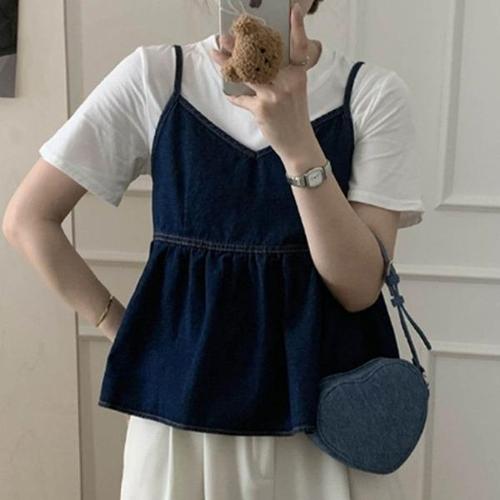 [엄지척]여성 데님 뷔스티에 나시티 여행룩 휴양지 여름_19610509_667501