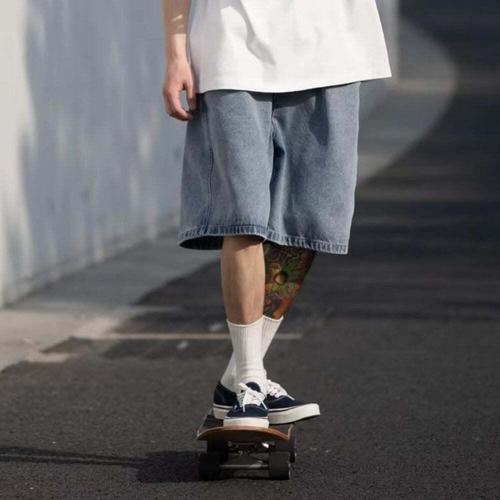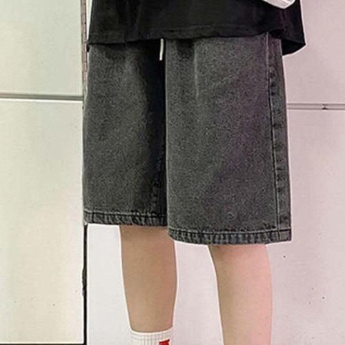 [셀럽하우스]자연스러운 IHEJ8267 핏 와이드 흑청 데님 남성 반바지