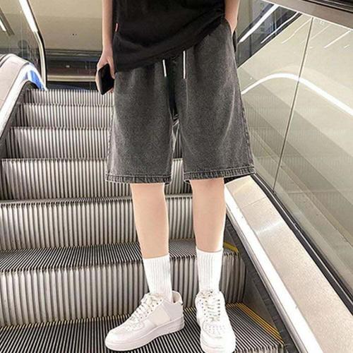 [셀럽하우스]캐주얼 MSSZ8778 남성 데일리 와이드 흑청 데님 밴딩 반바지