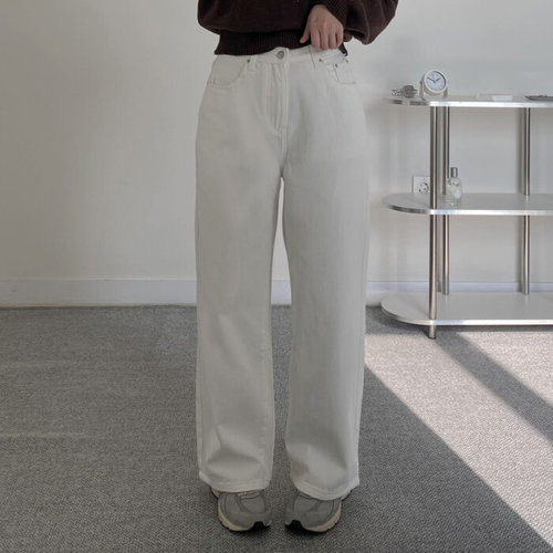 [신상오픈런]여성 아이보리 클래식 코튼 청반바지 화이트톤