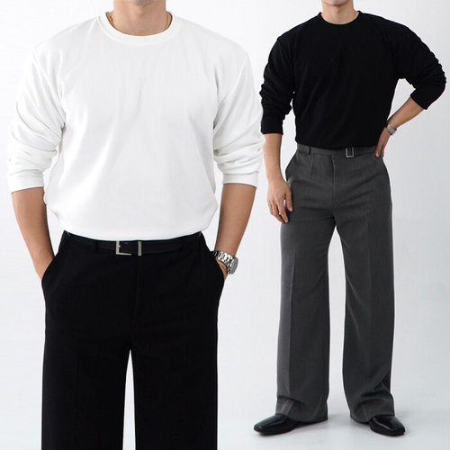오엔엘 / 1 + 1 기모 링클프리티셔츠 남자긴팔흰티 남자긴팔티