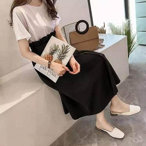 |CMD2645|여성 라운드넥 반팔 티셔츠와 롱 랩 스커트 투피스 세트