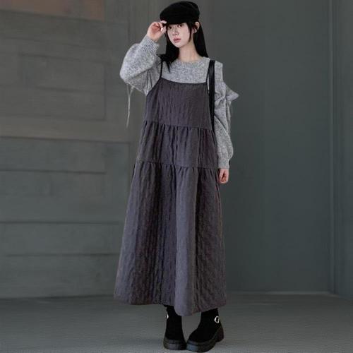 [미라클세븐]여성용 롱 원피스 끈 나시 뷔스티에 A라인 누빔 드레스