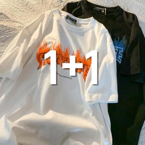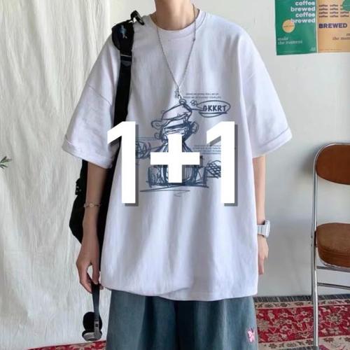 [노프라브럼]1+1 남녀공용 커플티 프린팅 흰티 데이트 학생 오버핏 반팔티셔츠 2컬러