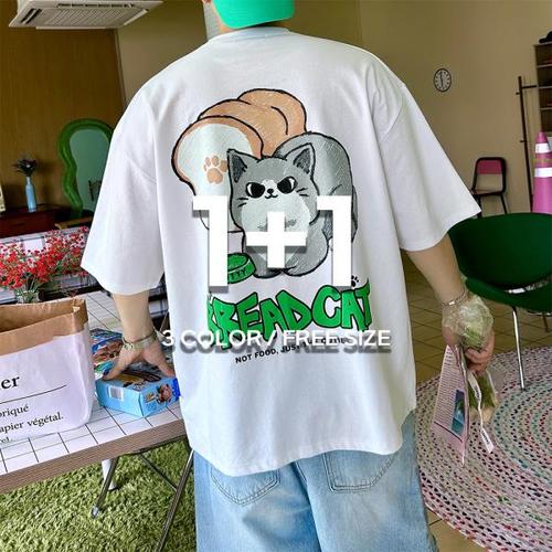 [노프라브럼]1+1 남녀공용 여름 쿨 오버핏 흰티 프린팅 커플티 반팔티셔츠 3컬러