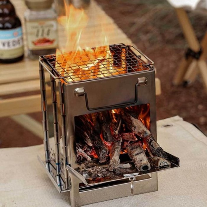 휴대용 야외 무연 숯 스토브 스테인리스 캠핑 모닥불 화로 1인용 백패킹용
