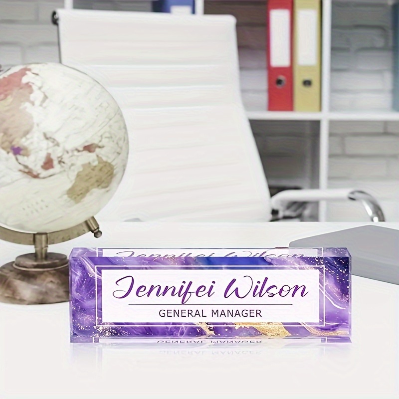 TEMU 보라색 대리석 디자인이 들어간 맞춤 아크릴 책상 이름판 - 교사, 상사, 직원을 위한 맞춤형 사무실 책상 간판 - 이상적인 보편적인 선물