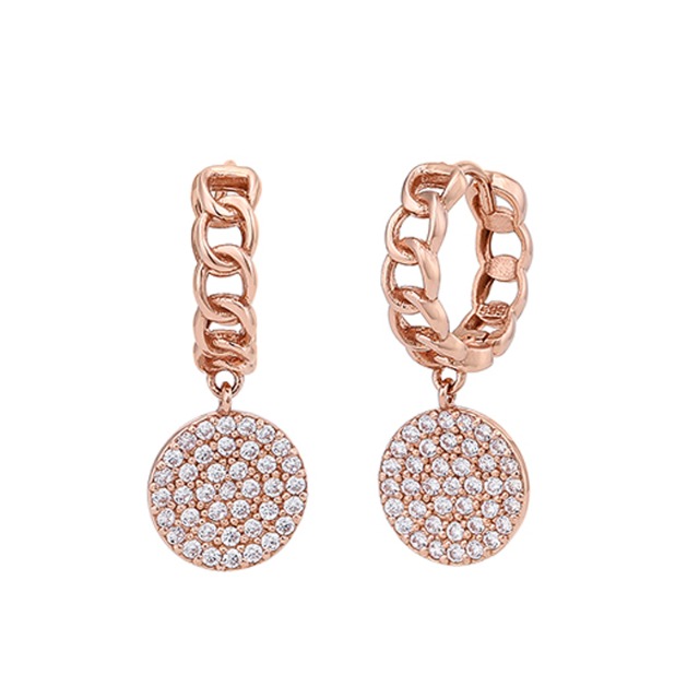 큐빅귀걸이 금침 로즈골드 체인 롱 드롭 원터치 링 귀걸이 14K