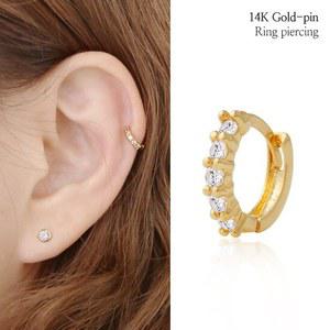 14K 금침 엘링 큐빅 원터치 데일리 링 피어싱 귀찌 1+1