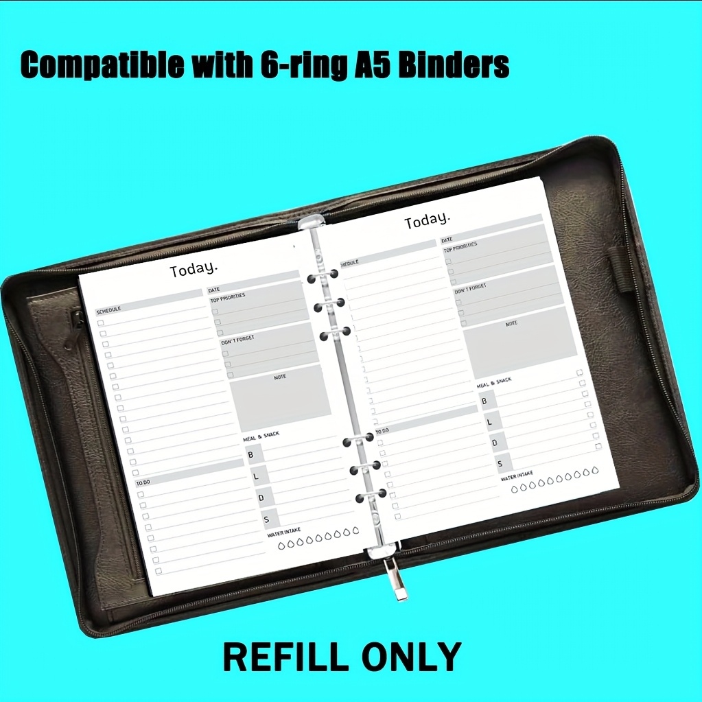 TEMU 날짜 미표시 일일 플래너 리필용 A5 링 바인더, 5.6" x 8.3", 6홀 펀치 플래너 인서트, 페이지당 1일