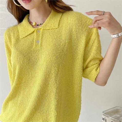 [다잇템]여자 라운드 덤블 카라 반소매 SS 나들이 니트 (9989694A)