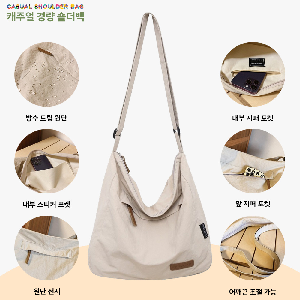 TEMU 남성 가방 방수 초경량 0.17kg 나일론숄더백 (36cm/조절가능) 대학생 수업용 캠퍼스 메신저백