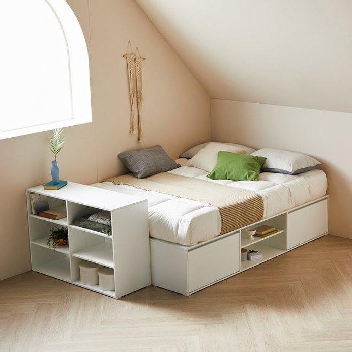 장인가구 [비밀특가] 버크 모듈형 빅수납 침대 슈퍼싱글 익스텐션 3단 선반장 1100