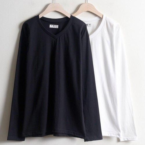 [오너클랜]인기상품 남성용 30수 면 브이넥 긴팔 티셔츠 오버핏 [WFLIG90_260301]