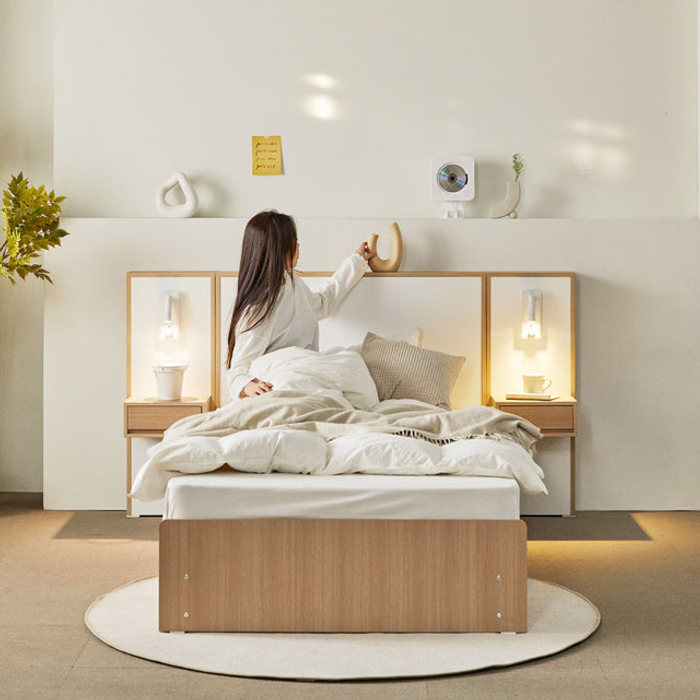 장인가구 [비밀특가] 장인가구 밤비 호텔 통서랍 수납침대 프레임 LK+협탁2 (높이 300,주문제작)