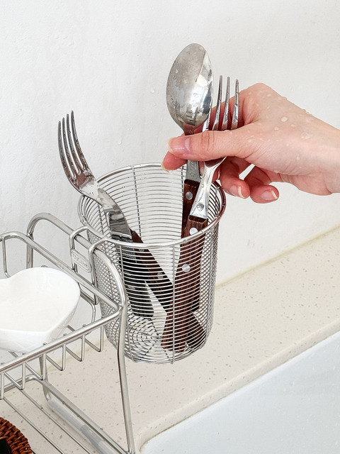 [아카시아] 1+1 304스텐 수저통 정리함 수저꽂이 보관함 싱크대 수저걸이