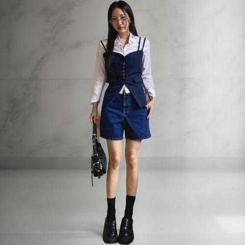 [다잇템][다잇템] 여자 4부 기본숏팬츠 워싱 일상룩 SS 청반바지_21349956_588872