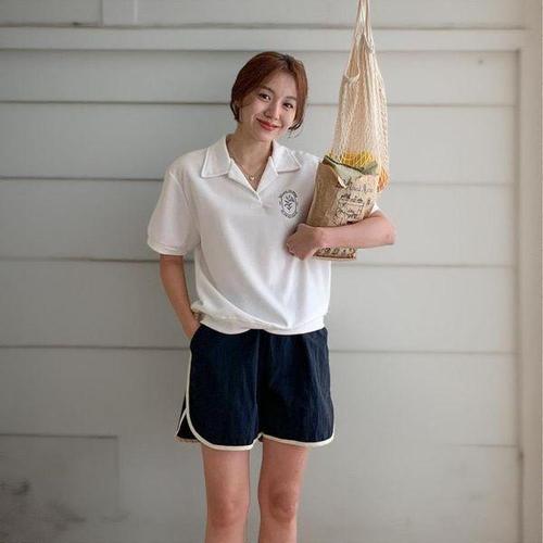 [신상오픈런]여성 키치무드 자수 레터링 4부 반바지