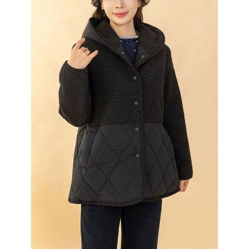 [디얼마미][디얼마미] 뽀글 누빔 배색 후드 자켓 /마담 미시 중년 여성 빅사이즈 40대 50대