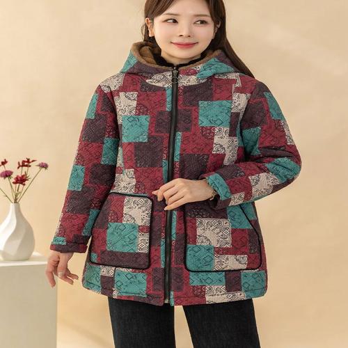 [디얼마미][디얼마미] 패턴 융털 후드 점퍼 /마담 미시 중년 여성 빅사이즈 40대 50대