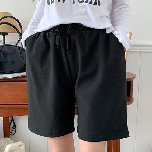 [에이치플러스몰]블랙 베이직 5부 면 반바지 여자 여름