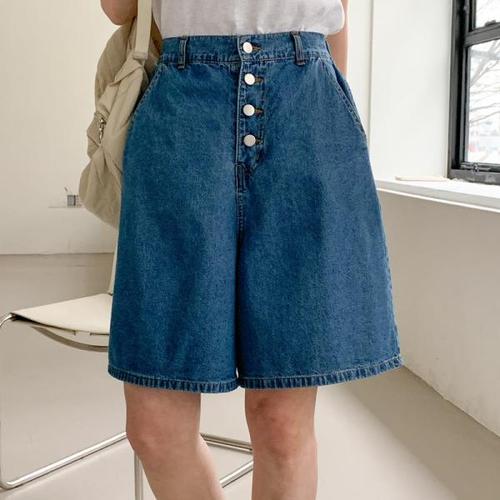 와이드 2색 여름 5부 데님팬츠 A라인 청반바지 여자 (WFKBXIX)