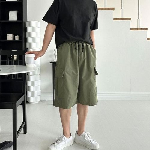 [셀러허브_여성트랜드패션]남성 슬랙스 스트릿분위기 오버핏 5부 바지