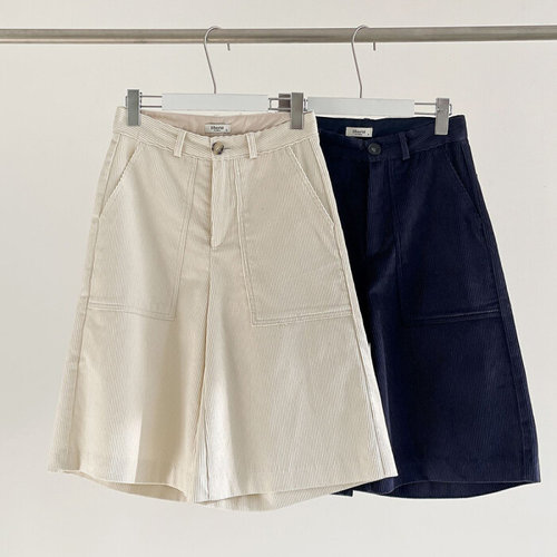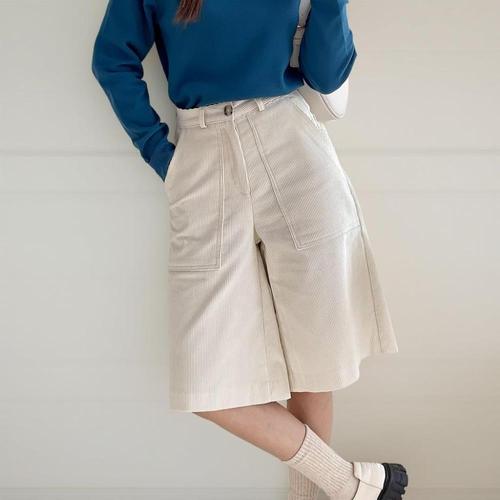 [옷자락] 여자 겨울팬츠 빅포켓 와이드핏 코듀로이 5부 반바지