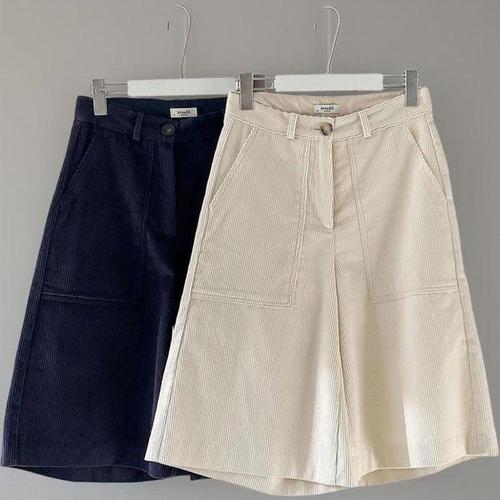 [신상오픈런]여성용 겨울 와이드 코듀로이 반바지 빅포켓 5부