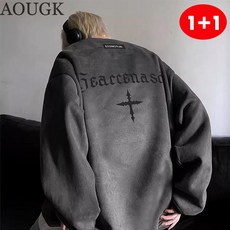 AOUGK 1+1 남성 스웨이드 롱 맨투맨 빅사이즈 긴팔 티셔츠 오버핏 롱티 프린팅 긴팔티 2XL~5XL