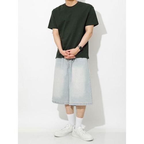 남자 청반바지 빈티지 일자 데님 워싱 와이드 6부 반바지 바지 원픽1