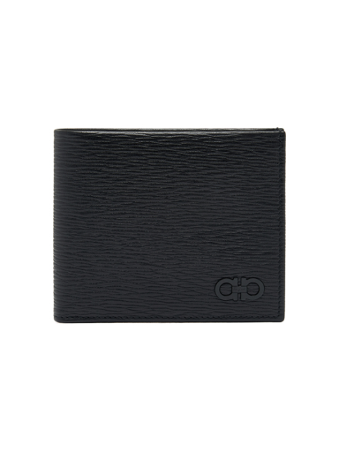 페라가모 HAMMERED LEATHER METAL GANCINI BI FOLD WALLET 66A063/0685956 Black 1JP12