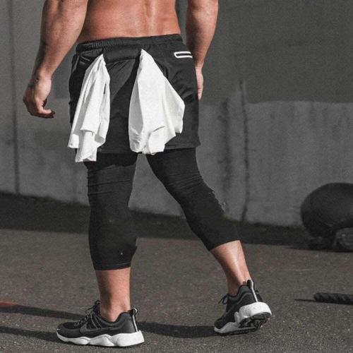 [셀럽하우스]남자 RYZM5367 투인원 허리밴딩 7부 레깅스 수건걸이 헬스 팬츠