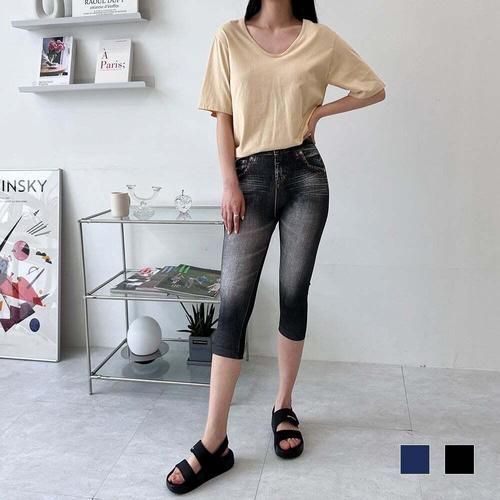 [셀럽하우스]기본돌청 KLJA2777 청나염 7부 스판 레깅스 반바지 청바지
