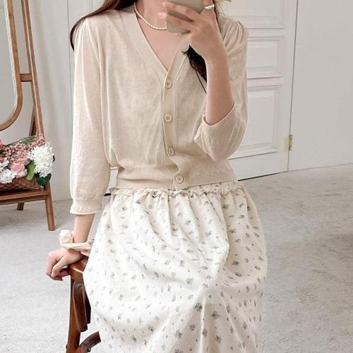 [다잇템][다잇템] 여자 여성스러운 V넥 비침 칠부 린넨가디건 가디건_17121765_588872