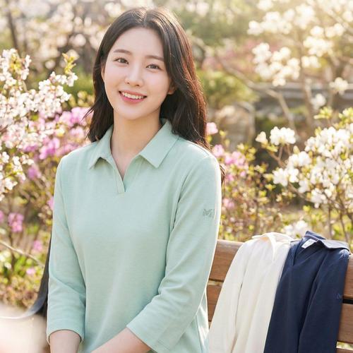 [밀레]밀레 여성 티셔츠 7부 편안한 반팔 면티 신축성 카라티 반팔