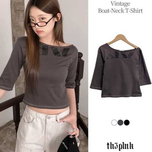 더핑크 / 이폼 슬림핏 빈티지 보트넥 7부 반팔티