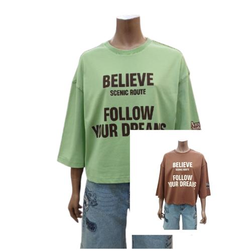 여성용 켈비션 7부 라운드티셔츠 T5715K0C