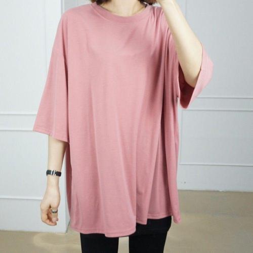 여성용 니트 춘하 반팔 슬림핏 롱루즈핏티 쿨링 루즈핏 티셔츠 상의 7부 원픽1