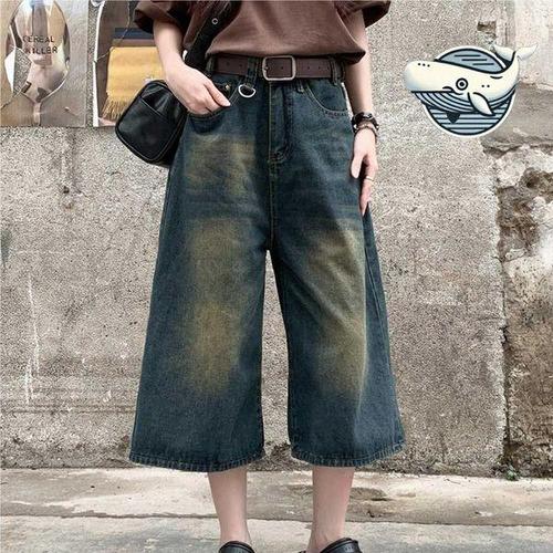 [에이치플러스몰]레트로 하이웨스트 데님 팬츠 여름 7부