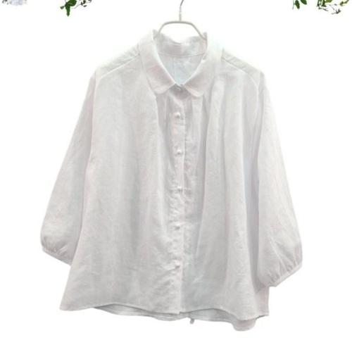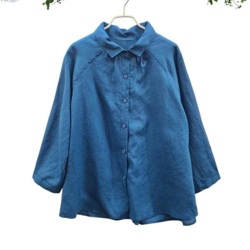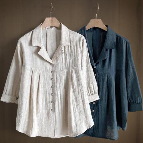 [신상오픈런]여성 루즈핏 린넨 7부소매 셔링 블라우스 동그란 버튼