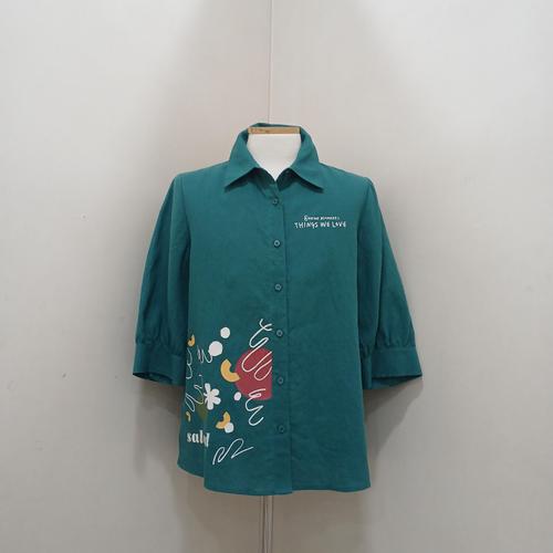 [비꼴리끄]린넨 프린트 칠부소매 블라우스