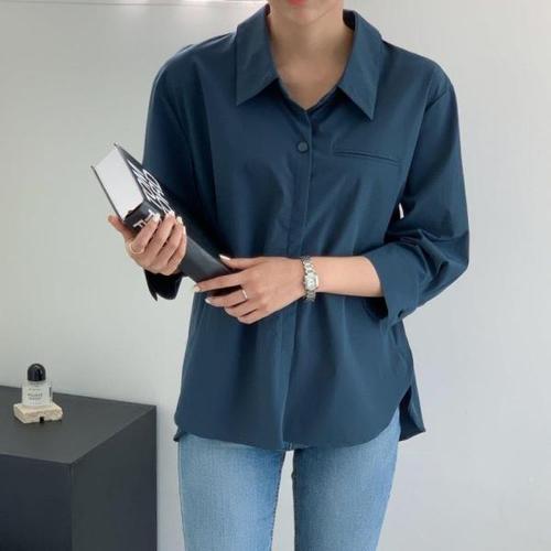 [옷자락]여자 차르르핏 둥근옆트임 히든포켓 7부소매 셔츠